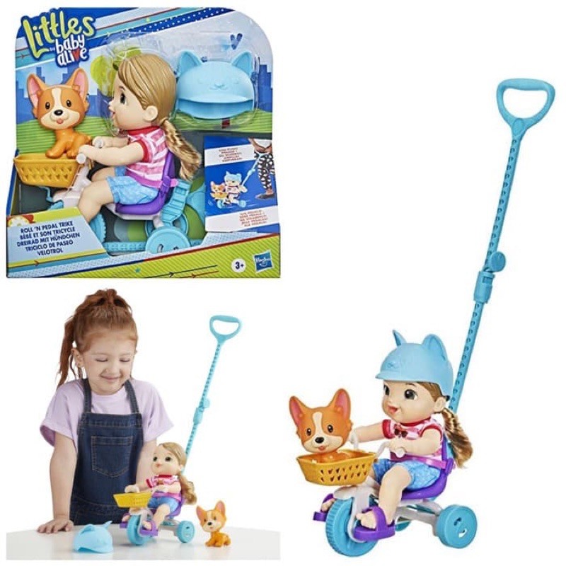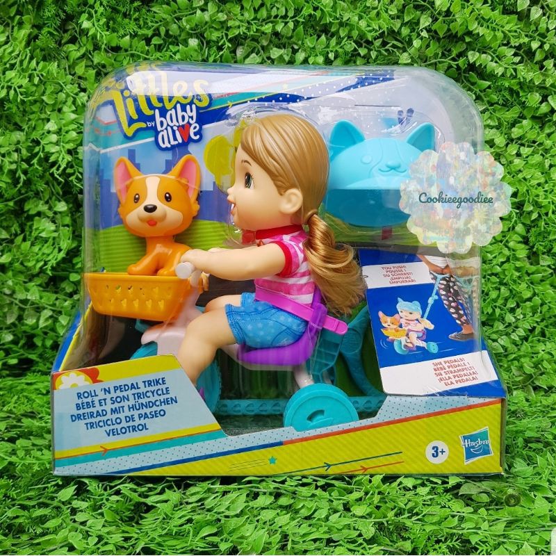 Baby Alive Littles Roll n Pedal Trike And her puppy friendDoll Play 402683443018. NEW BABY ALIVE ROLL N PEDAL TRIKE DOLLCheck out my new video on baby alive Official. LITTLES BY BABY ALIVE ROLL N PEDAL TRIKE AND DOLL HASBROAges 3 years upApprox.
