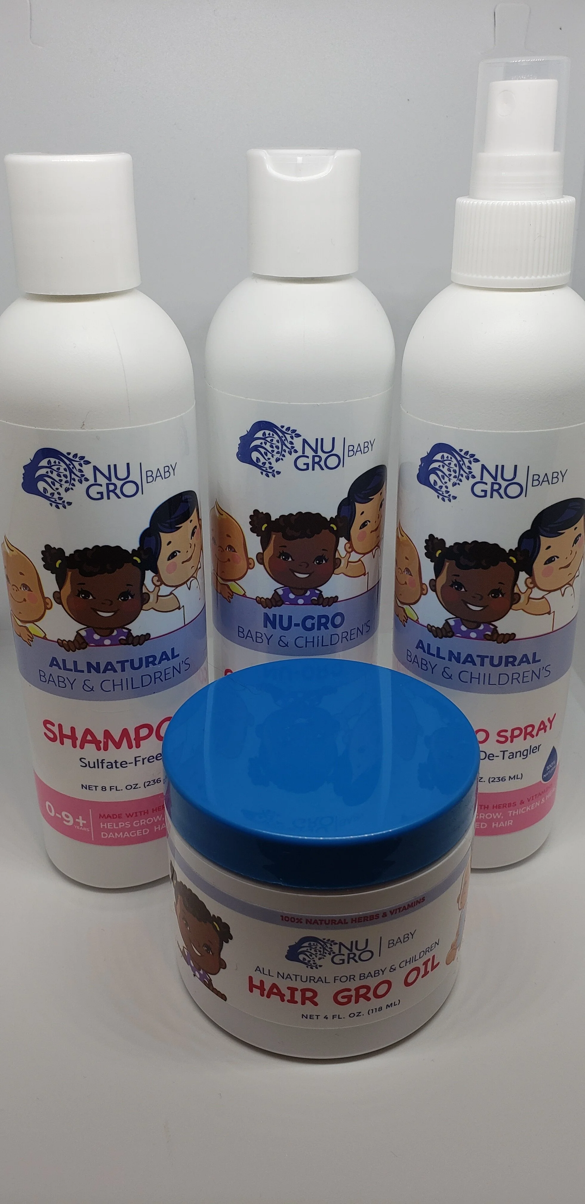 Nugro baby hair gro oil. Hair-GRO Oils are Step 4 of the 4 Steps to Hair Growth. NU-GRO helps quickly Grow hair Thicken hair and Heal damaged hair in a 4 step process using 100 Natural Herbs Vitamins. Hair Oil moisturizes the scalp and increases growth moisture and shine.