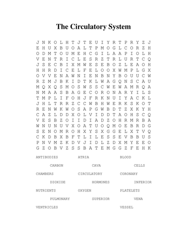 The process by which. It says there is no account with my email. Additional crossword word search comprehension quiz and answer key are also included. Circulatory System Word Search. Students search for words associated with the circulatory system. Circulatory system wordsearch answers Author. Circulatory System Word Search.