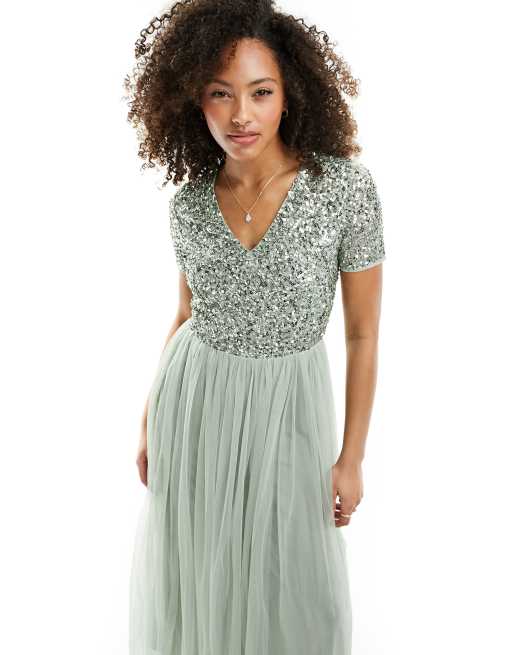 Sage Green Formal Dresses. It includes a crew neckline short sleeves a ribbed body midi length and pockets. Sage green evening gowns prom dresses and cocktail dresses for sale.