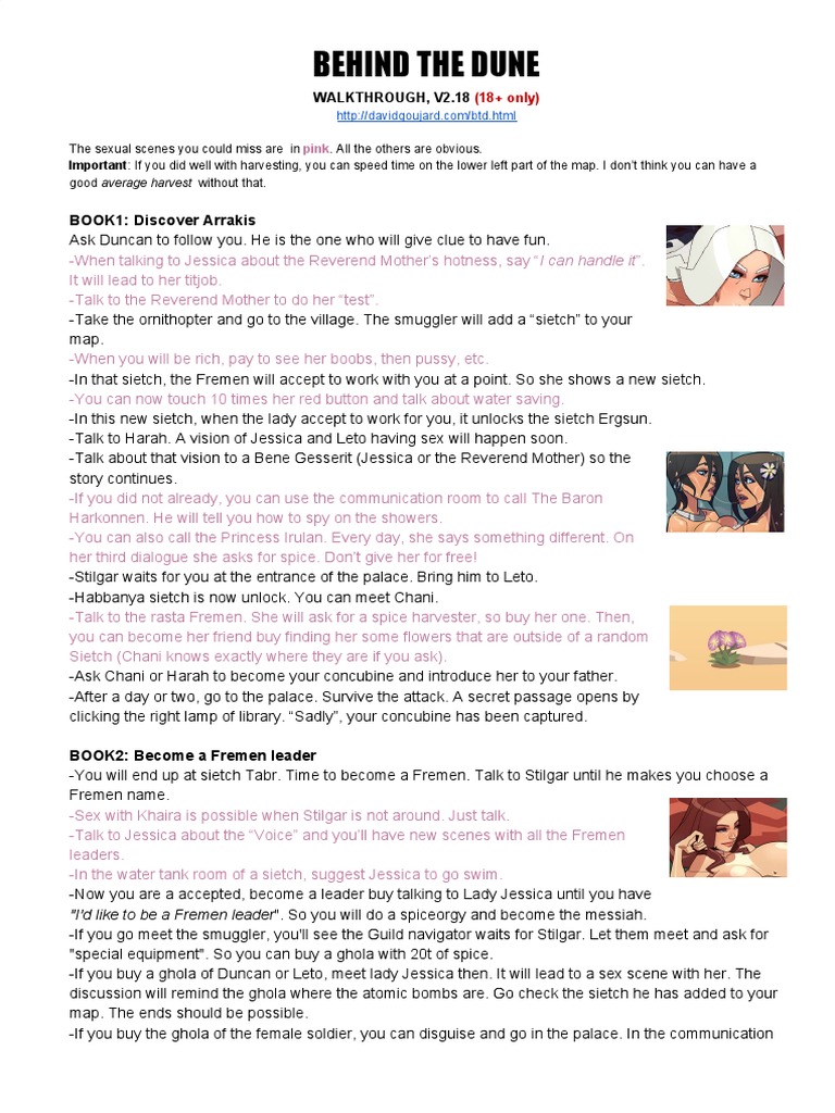The basic story is left intact. Behind the Dune is very much based on the 1992 Dune game but adds large mammaries and significant amounts of reproductive bodily fluids. I dont think you can have a. With the Behind the Dune influence Paul has a more intense libido so the goals for his character are a bit different. If you did well with harvesting you can speed time on the lower left part of the map. Illustrator John Schoenherr gave the sandworm three triangular lobes that form the lips of its mouth. The test is normally reserved for women undergoing the Bene Gesserit training.